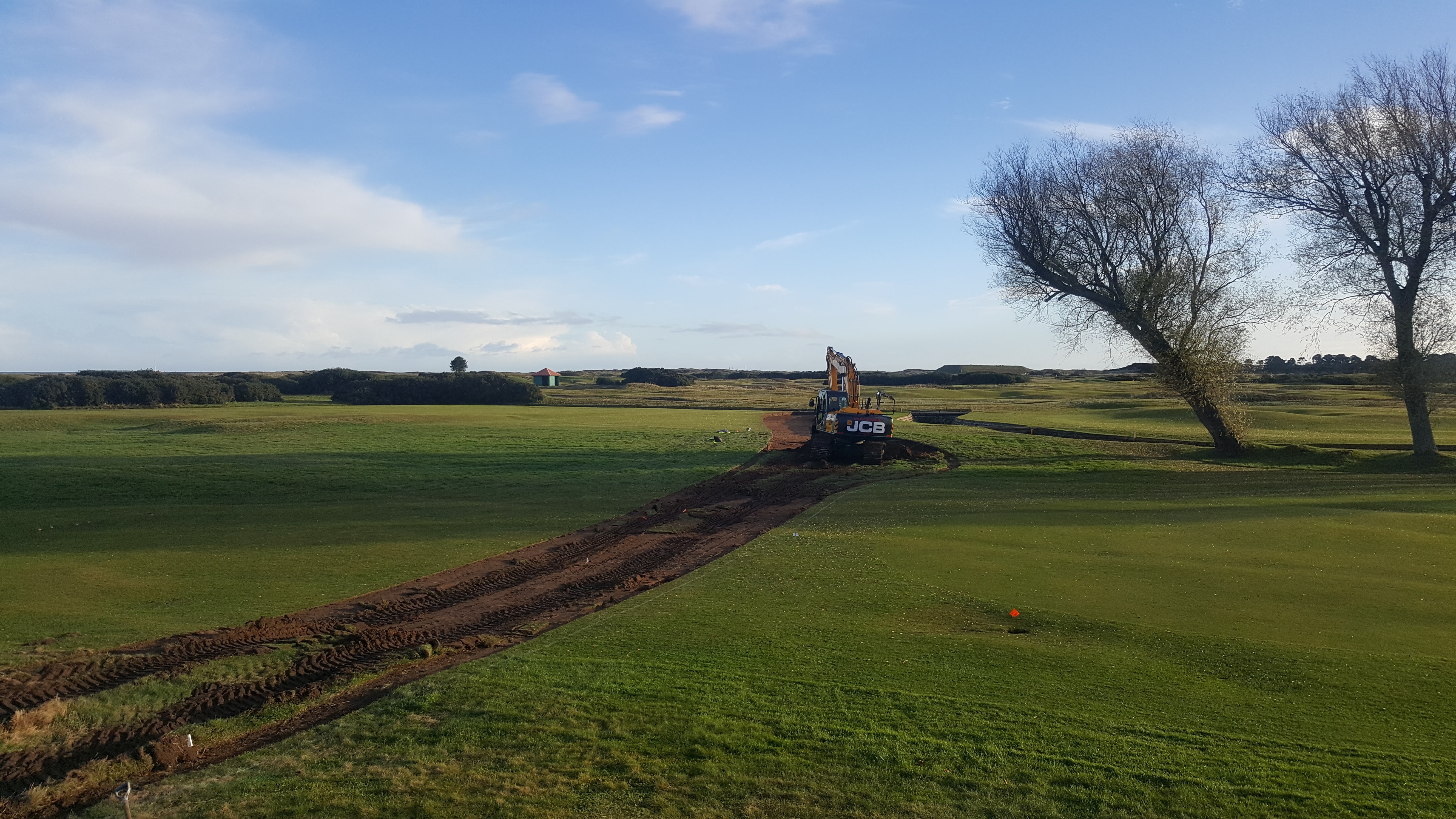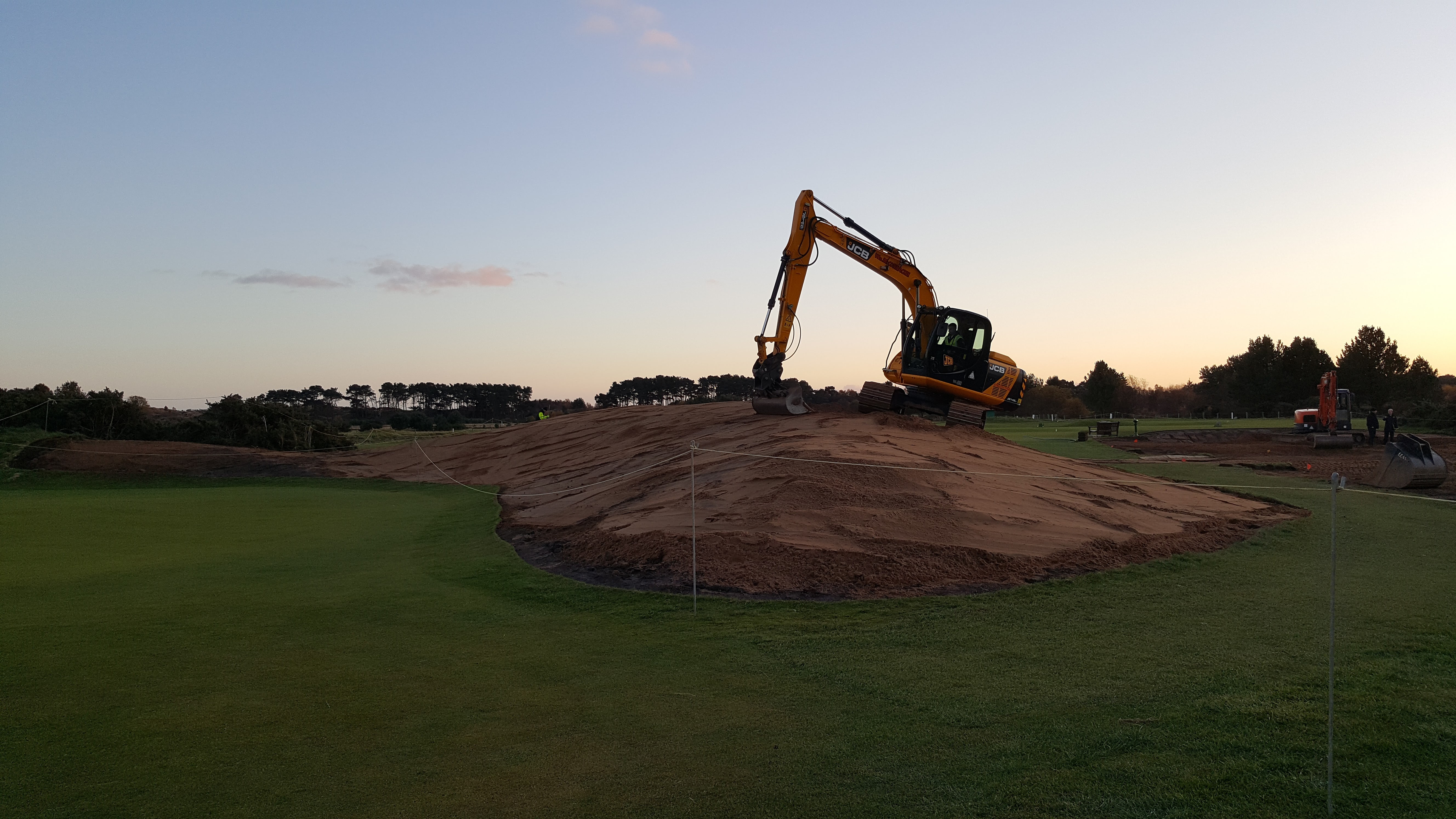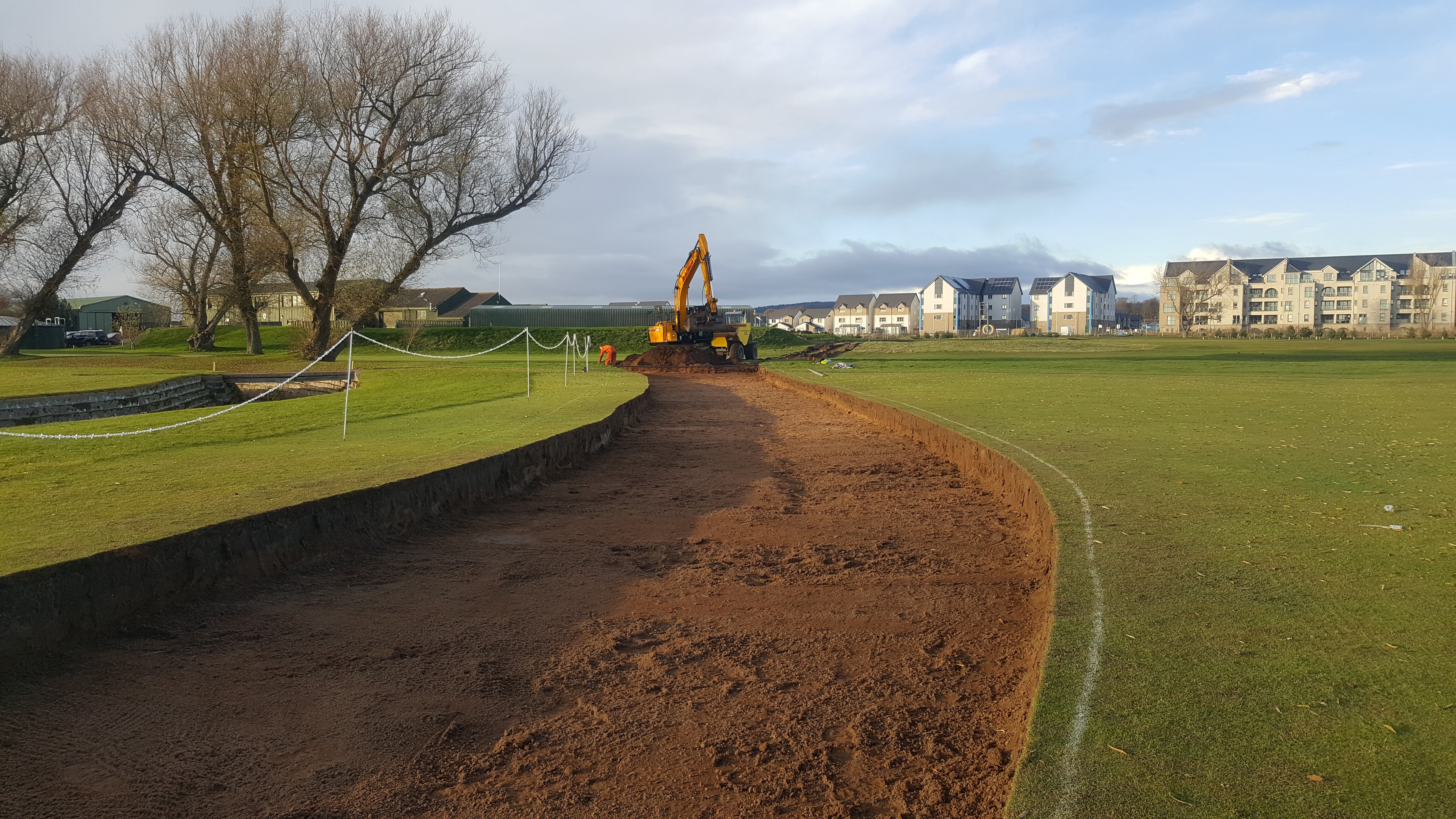 And away from the work on the Championship Course, contractors have started the construction of a new road across the 5th and 17th of the Burnside. This will ease congestion around the 10th green in future events as well as The Open. All the material removed from this job goes towards creating the mound at the 8th before being capped with sand and for the regular users of the practice area by the 1st hole of the Burnside, you will see the rubble mound slowly disappearing as it is used for filling the road.