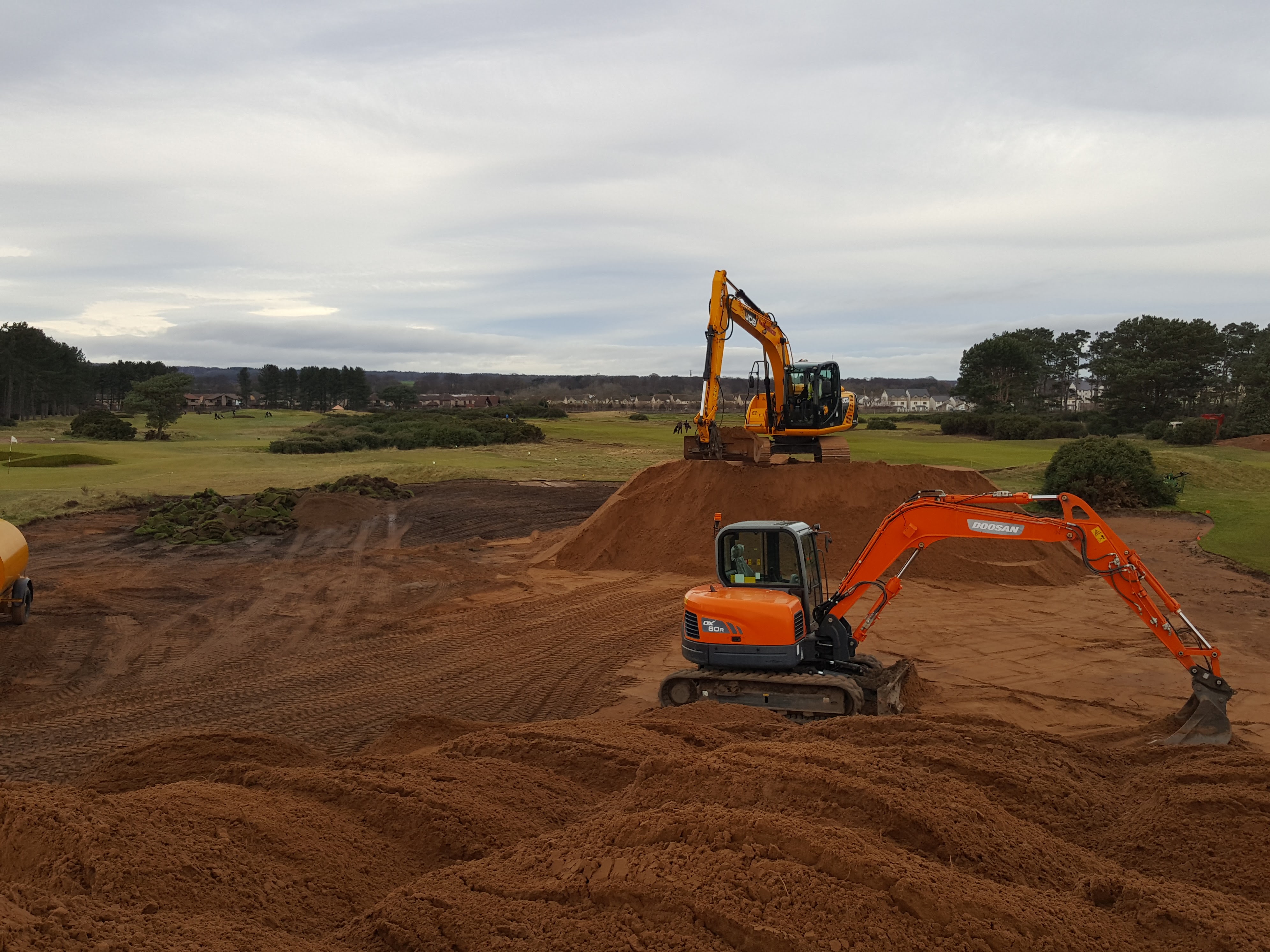 At least he knows how to dig out bunkers! Tristan was maybe a little thankful that the ground was hard as provided him with the opportunity to go and visit Kingsbarns, the majority of the courses at St Andrews and Panmure, a course that is affiliated with Royal Cinque Ports. Tristan was also involved in a course walk with students from Elmwood College looking at bunker placements on the Championship Course. Thanks for your help Tristan.